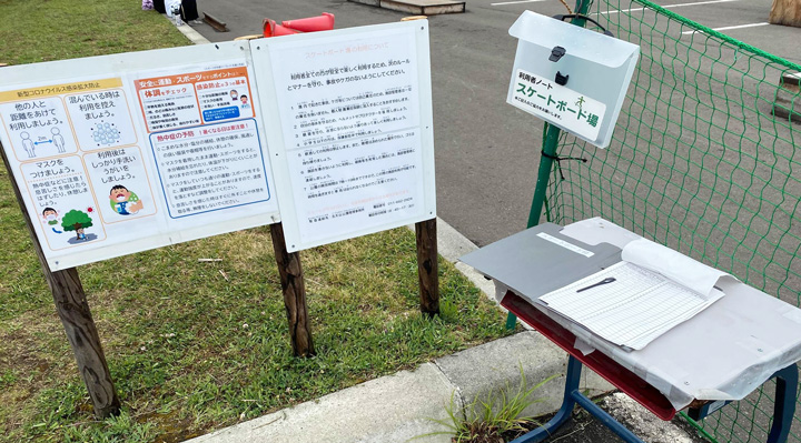 ※利用前にスケボーエリア利用簿に記入をお願いします