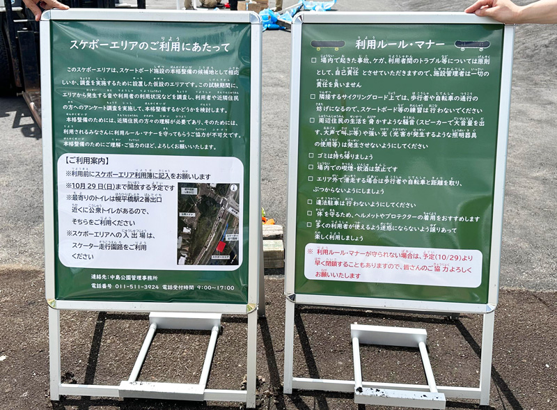 札幌市が公園をスケートボード場として、開設したのは初めてのケースであり、我々はこの環境をベースにこれから始める多くの方々に、滑ることの楽しさや、ルールやマナーといった正しい遊び方を伝えていきたいと考えておりますので、下記の内容についてご理解とご協力をお願いします。
