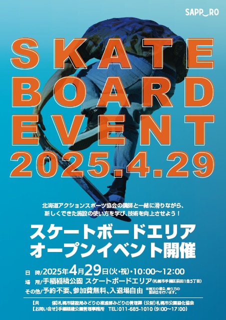 札幌市西区「五天山公園」内スケートボード場は、2022年度の開放を終了させていただきました。本年度もご利用誠にありがとうございました。