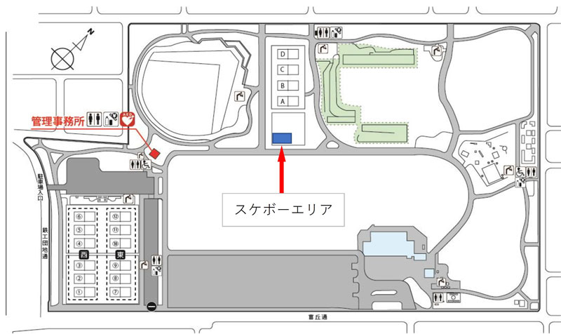※スケボーエリアへの入出場は、スケーター走行園路をご利用ください